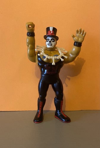 Famous for performing spells or curses on other wrestlers, Papa Shango - later known as Kama or the Godfather in WWE - is one of the most detailed characters in the Hasbro line. Comes with a hard to find necklace accessory. Had a feud with the Ultimate Warrior and appeared during Sid Justice and Hulk Hogan's main event match at Wrestlemania 8.